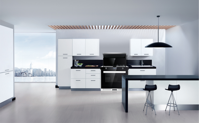 集成灶的側吸下排原理,近距離高效吸油煙,讓油煙無處可逃。同時,由于集成灶上部沒有煙機,做吊柜的自由度更高。
