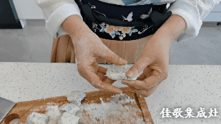 6. 將小塊面團(tuán)按壓成圓面皮,用于包裹餡料。