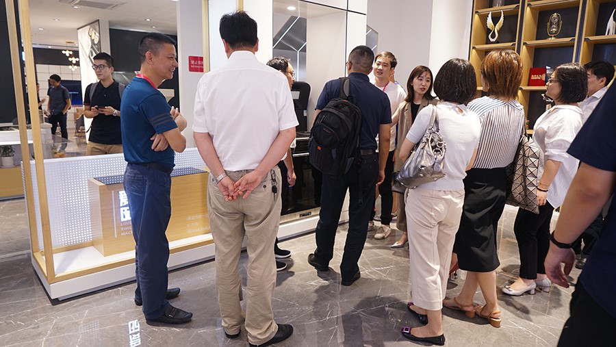 考察團一行來到佳歌集成灶展廳近距離體驗了一把佳歌集成灶的使用感受。佳歌所有產(chǎn)品均出自全球頂尖設計師之手,真正的精雕細琢,整體外觀一體成型,99.96%的凈煙能力,5.0kW超大火力都無一不讓考察團拍手稱贊。