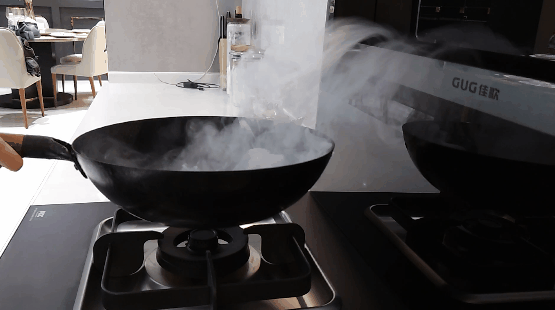 我們使用煙餅?zāi)M炒菜,檢測(cè)佳歌A6DZK的排煙性能,肉眼可見產(chǎn)生的濃煙被悉數(shù)吸走,煙霧幾乎沒(méi)有逸散。