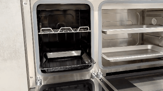 很多獨(dú)立蒸烤箱的蒸箱只有兩層玻璃,而佳歌A6DZK的蒸箱與烤箱都配有三層玻璃門隔熱,家里有小朋友也不怕被高溫燙傷。